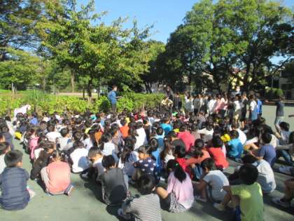 校長先生からは、「地震からしっかり自分の身を守ること。東京では地震の後に火災が発生する可能性が高く大変怖いです。火災からも身を守りましょう。そして火遊びなど決してしないこと。」とお話がありました。