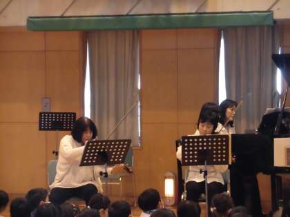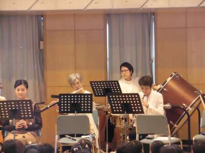 八幡山小学校の卒業生を含むプロの演奏家12名による音楽コンサートが行われました。バレエ音楽「コッペリア」を生演奏する中、フランスのお話・朗読も聴かせて頂きました。プロの演奏を間近で拝聴することができ、素晴らしい経験でした。