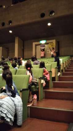会場の区民会館では、避難経路を確認して劇を見ました。