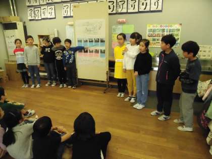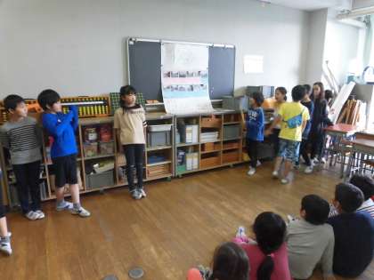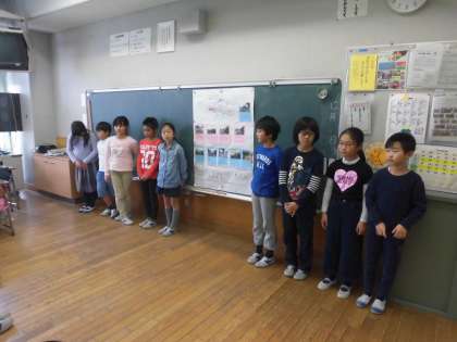 11日(水)の5校時に、3年生の地域安全マップ発表会がありました。八幡山学校周辺の安全な場所や危険な場所を調べて、まとめた内容を2年生に向けて丁寧に発表してくれました。