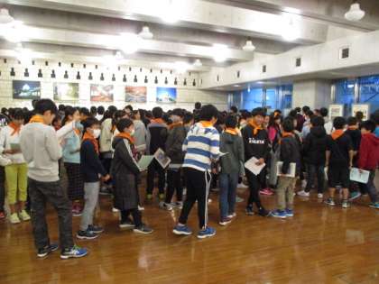 ホールで全国や都内の他の小学校とともに待機して入場を待ちました。