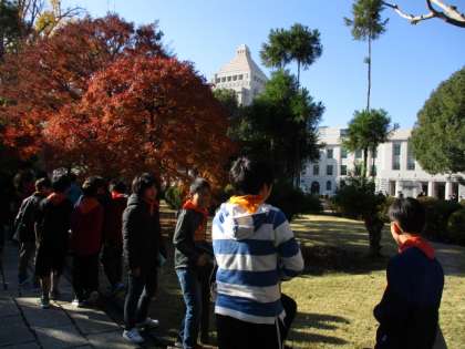 国会議事堂の中は、大理石の床や赤い絨毯が印象的でした。建物を出ると日本全国の県の木が植えられていました。さすが、日本の中心の議事堂でした。