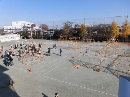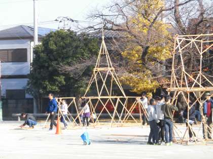 2校時目の終わりには、すべてのグループで立派なお家が完成しました。低学年の子達からは、「僕たちも作ってみたいな。」と言っていました。