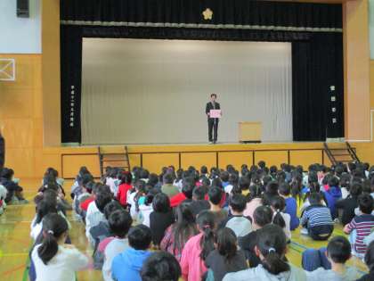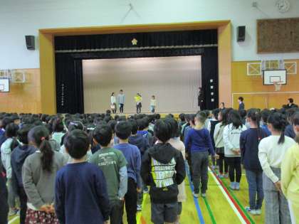 2年生と4年生の代表児童が、2学期がんばったことや3学期の抱負を堂々と発表していました。生活指導主任の先生から、冬休みの過ごし方についてのお話もありました。