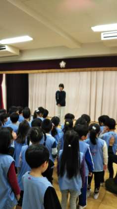 八幡山幼稚園では、3学期の始業式を行いました。子供たちの元気な顔が幼稚園に戻って来ました。園長先生からは、「年少さんは、年長さんからモルモットのお世話とお誕生会の司会や準備のお仕事を引継ぎます。年長さんは、いよいよ小学校入学が近づいて来ました。幼稚園の思い出を増やしていきましょう。」とお話がありました。全員で、「たこ」の歌を歌って、3学期 をスタートしました。