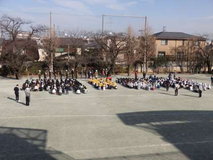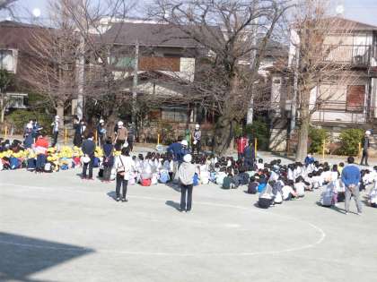 2月の避難訓練は、昼休み中に大きな地震が発生した想定で行いました。