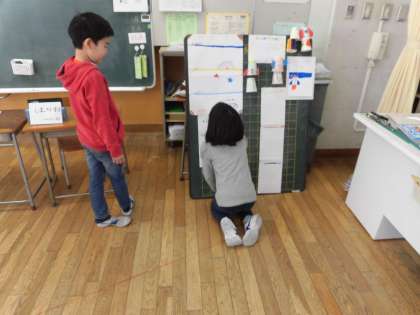 3日(月)の3・4時間目に、2年生は生活科の学習で作ったおもちゃで「おもちゃ大会」を開きました。