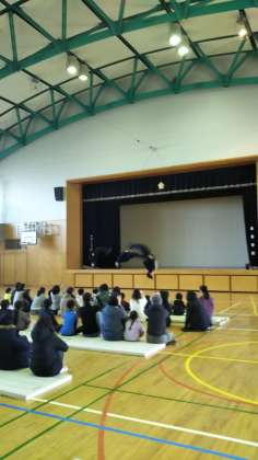アクロバットプロパフォーマンスユニット「BLUE TOKYO」の皆さんによる「親子で楽しめる健康運動教室」です。