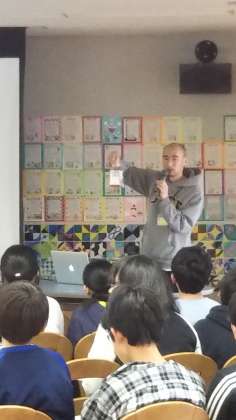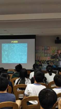二人目の講師は、東京都医学総合研究所の研究員の宮岡佑一郎さんでした。宮岡さんには、研究者のお仕事についてお話を伺いました。子どもたちは、細胞の研究の器具や試薬について熱心に説明を聞いていました。