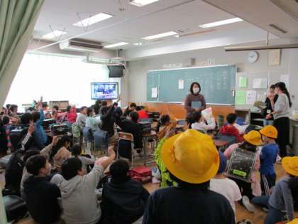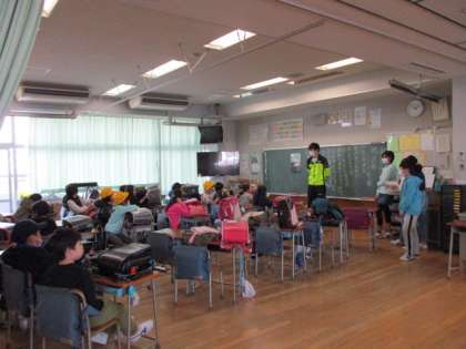 班ごとに分かれ、班長さんが出席を確認した後、先生やPTA校外委員の方からの通学路の危険個所や災害についてのお話を聞きました。皆真剣に聞いていました。