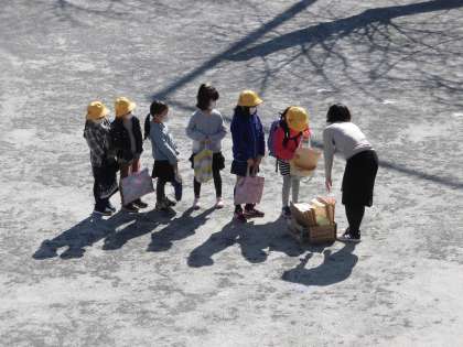 1年生の分散登校の様子。子どもたちは、久しぶりに友だちに会えて嬉しそうです。