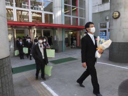 保護者の皆様と教職員で卒業生を送別しました。