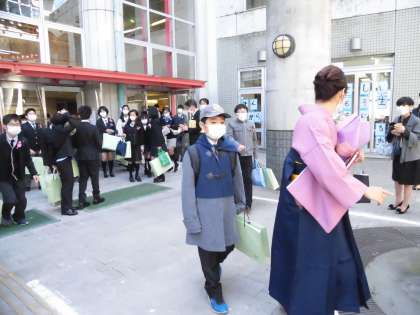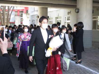 卒業生は、たくさんの「おめでとう。」の歓声に囲まれ巣立っていきました。