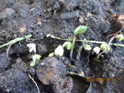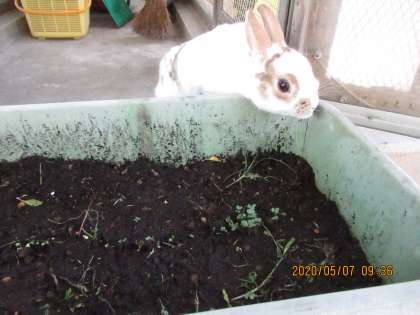 この前植えた種の『芽』が出ました。芽の出るダンスのおかげ!! 大きくな〜れ!