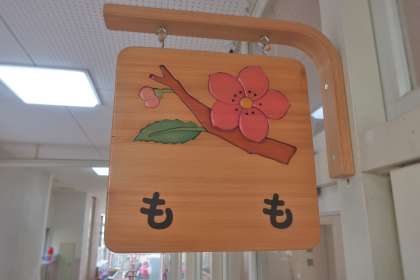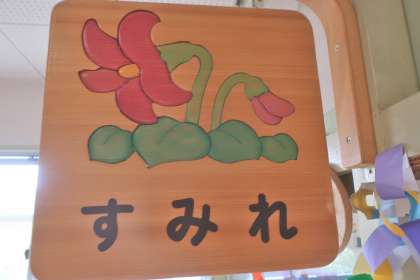 おへやの いりぐちには くらすの かんばんが かかっています。