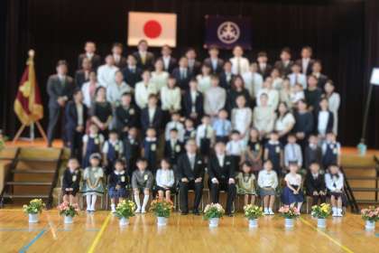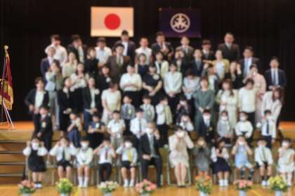 入学記念の集合写真は、マスクのままで整列し、シャッターうを切る寸前でマスクを外しました。