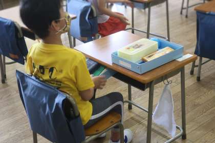 朝、ランドセルから荷物を出して、引き出しの代わりの道具箱にしまうこと。