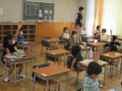 元気よく手を挙げて自分の意見を発表する姿が見られました。