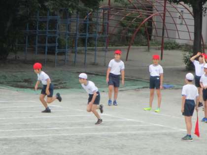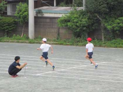 6年生は、体育の授業で50m走のタイムをとっていました。