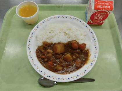 「八幡山カレーライス、みかんゼリー、牛乳」です。