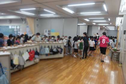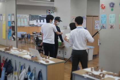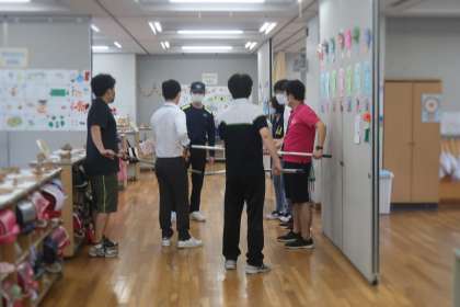 今日の避難訓練は、不審者が侵入してきたことを想定して行いました。