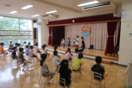 きょうは、ばらぐみさんと すみれぐみさんの おたんじょうかいを しました。
