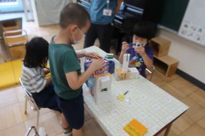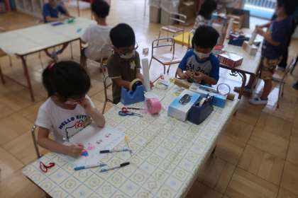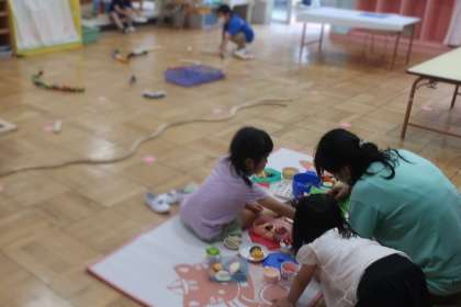 へやの なかで、せいさくしたり ままごとしたり、たのしく あそびます。