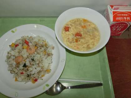 「ナシゴレン、トマトと卵のスープ、牛乳」です。