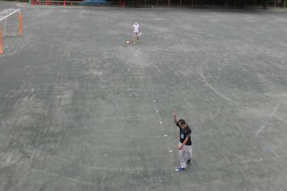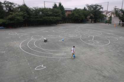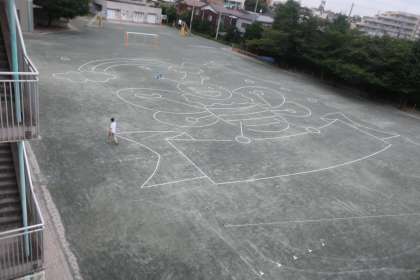 朝から、業者の方が校庭に図案を描いてくださっています。