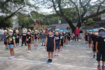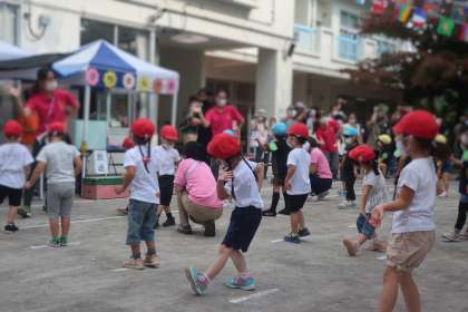 ことしは、ふたつに わかれて うんどうかいを しました。