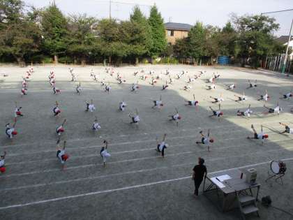 6年生の運動会の練習では、笛の合図に合わせて技の練習をしていました。