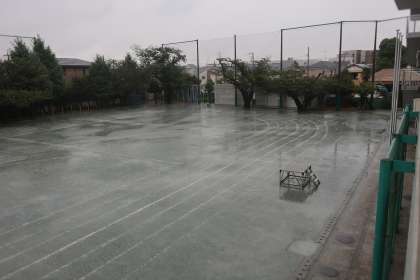 本日の創立60周年記念紅白ハチリンピック競技会1日目(児童観覧日)ですが、雨天のため延期といたします。