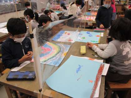 絵の具がにじむことを生かしてきれいな絵を仕上げていました。