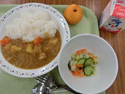 4校時のなかよし学級(縦割り)からそのまま一緒に給食を食べる「なかよし給食」の計画がありましたが、感染症予防対策のため、給食はクラスに戻ってからとなりました。今日のカレーライスも大人気で、子どもたちの笑顔をたくさんみることができました。