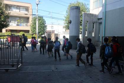 早めの昼食を学校で食べ、社会科見学に出発します。