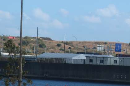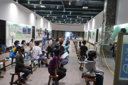 中央防波堤埋立処分場の学習ホールでお話を聞きます。