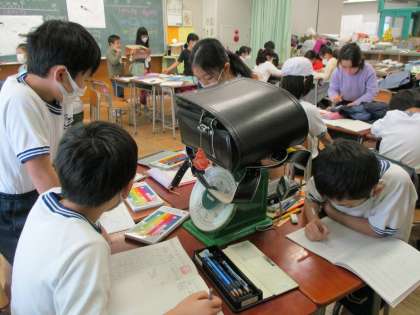 ランドセル・体育着の入った袋・防災ずきん等いろいろなものを<4kgばかり>にのせて目盛りを読む学習をしました。「ぼくのランドセルの方が重いかな。」「中に時間割分の教科書を入れたら何gになるかな。」など様々な疑問を出し合いながら計測していました。