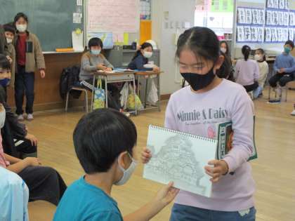 クラスみんなで自分たちの特技を発表する「学習発表会」を計画、準備して発表しました。ドキドキしながら自分の順番を待ったり友達の発表にあたたかい拍手をしたりしていました。