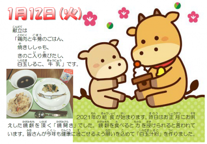 2021年の給食が始まりました。感染症予防のために規制の多い中ではありますが、子どもたちが楽しみにしてくれる給食作りに励みたいと思います。