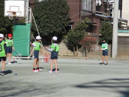 4年生は、体育の授業でラケットベースボールの学習をしていました。