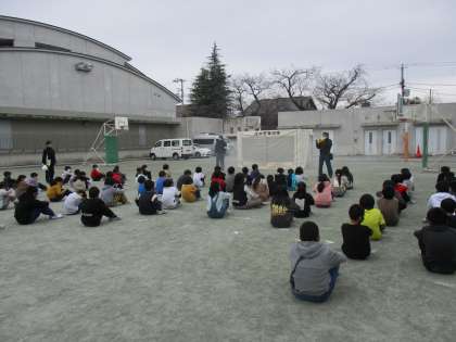 放送機器が使えない想定で行いましたが、落ち着いて静かに移動することができていました。