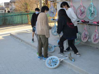 運動委員会はボールや一輪車のタイヤの空気入れ、