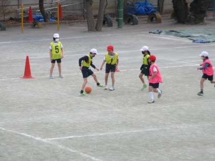 寒さに負けずに、元気いっぱいにボールを追いかけていました。
