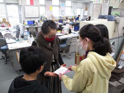 今年度の感謝の会は、6年生が教職員に感謝の気持ちを手紙を書いて渡しに行くというものでした。少し照れくさそうに改まって伝えられた感謝の言葉に、どの職員も思わず「中学頑張って!」と声をかけずにはいられませんでした。