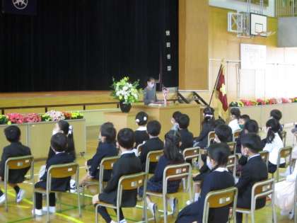 校長先生の話や、6年生児童代表の話を一生懸命に聞いたり、