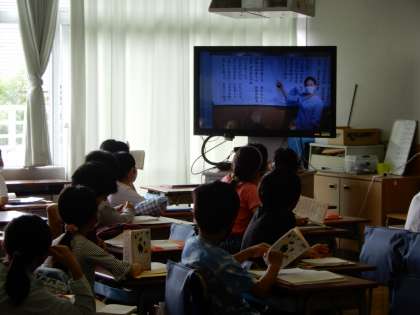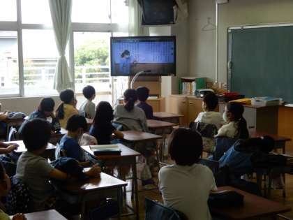 今朝の音楽朝会では、校歌を取り上げました。テレビ放送を使って、小山先生が歌詞をていねいに解説してくださいました。最後に校歌の音楽が流され、みんな心の中で歌いました。