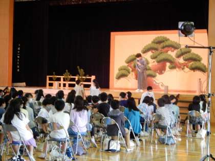 6年生が、古典芸能鑑賞教室に参加しました。上北沢小、経堂小の6年生も一緒です。狂言の「附子」を観ました。体育館のステージが、狂言の舞台に変身。生の迫力を味わい、よい学習ができました。