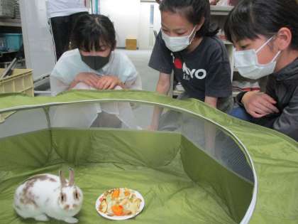 飼育委員会では、モカの誕生日をお祝いするケーキを作成していました。
