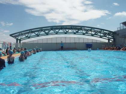 今日は、土曜授業日です。5年生と4年生がプールに入りました。このところ雨の日が続いていましたが、今日は最高のプール日和です。