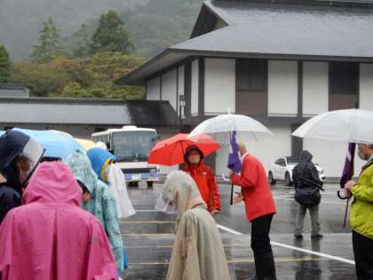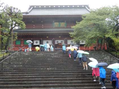 日光山内の見学です。まずは輪王寺。すごい雨が降っています。